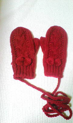 お気に入りの赤い紐つき手袋です。 編みこみのデザインにボンボンが両方についてます。 紐つきってちょっと子供っぽいけど可愛いので買っちゃいましたぁあ♪ わたしは手がちいさいので子供用でもいいんですが‥ 年齢がね‥もう大人なので(^^; まぁ気にせずに冬に使います。