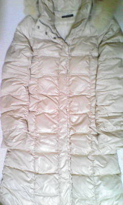 シャンパンゴールド?ベージュ?色のロングコートです。 フードにファーが付いていて着るだけでなんか可愛く見えるし、 ダウンは軽くて暖かいので冬のマストアイテムです♪ まぁ‥クリーニングに出すと高いですが、 物持ちがいいので大事に着ていこうと思ってます