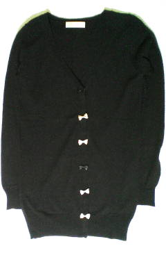 黒のロングカーディガンです。 リボンが可愛くて買いました♪ 生地が薄めなので、冬以外でももちろん着れますし、 この上にアウターを羽織ってもぜんぜん大丈夫!! 黒ってどんなコーデにも合うので着まわしがきくと思います!