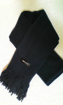 画像では黒くみえますが実際は、ネイビーのニットマフラーです。 冬の寒さ対策に。 ぐるぐるっと3回巻いても余る感じの長さがあります 確かー3000円程だったかな?? 触り心地がよく、巻いた時に首周りがチクチクしないです。