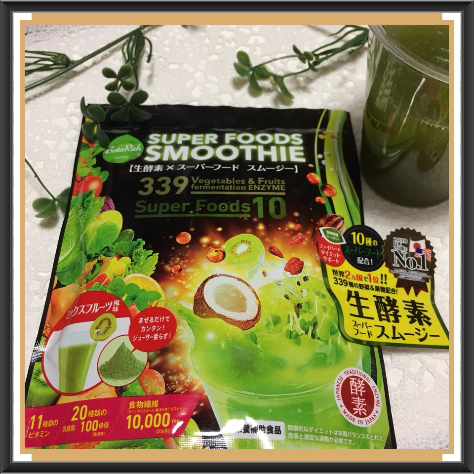 339種の植物発酵エキスをベースに 栄養価の優れた10種のスーパーフードを配合していて 食物繊維や乳酸菌もたっぷり加えてあるんだそうです☆ サッと溶けやすく 後味がすっきりするので 私は水で混ぜて飲んでいます。 1杯あたり約53.8Kcal さらっとしたフルーツ味のジュース感覚で 毎日、美味しく続けることができます。 飲んだすぐにはあまり感じなかったけど 少しすると満腹感を感じるので 間食も減り嬉しい効果につながりそうです。 モニター使用。