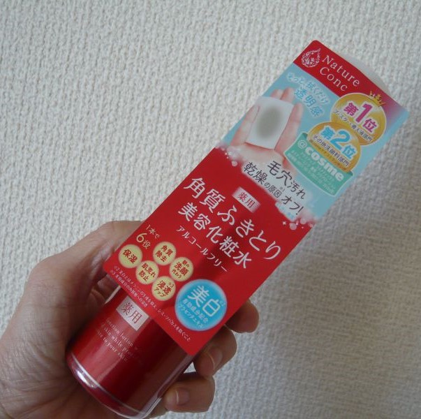 1本で6つの機能を果たしてくれるローションです。ふきとり化粧水、朝の洗顔代わり、保湿化粧水、美白効果、美容成分の浸透アップ、肌荒れ防止 などと多機能。とろみのあるローションで保湿効果は感じられます。拭き取ると肌がスッキリした感じがあるのもいいと思いました。朝の洗顔代わりにも使えるとのことなので、角質ケアも同時にできていいと思います。