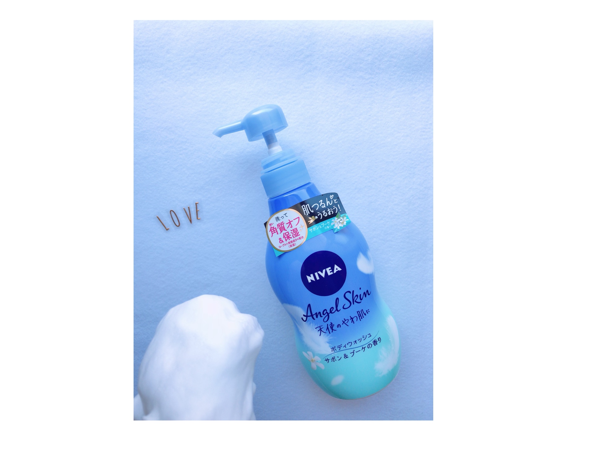 2019/04/13 新発売! . ニベア エンジェルスキン ボディウォッシュ サボン&ブーケの香りをニベア花王様からいただきました!! . . 480ml . 古い角質をオフしてヨーグルト美容成分が肌を保湿してくれます。 . . MADE IN JAPAN . サボン&ブーケの香り . . トロ〜〜っとしたテクスチャーでワンプッシュを泡だてネットで泡立てると固めの泡になり、しっかりカラダが洗えます。 洗いあがりはスッキリなのに柔らかい肌に!! . .