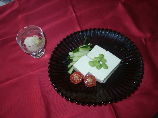 *☆*――*☆* この夏のダイエット *☆*――*☆* これから食欲がなくなった時やおかずが物足りなくなった時、急な来客時の一品に!(冷蔵庫にあるものでもOK) 材料:2〜3人分 絹こし豆腐 1/2 ○豆腐は一口大に切る。 胡瓜 1/2 ○きゅうりは拍子切りし、塩水に浸し、水気を切る。 枝豆 適宜 ○枝豆は塩茹でし、冷ましてから実をとる。 プチトマト1〜2個 ○プチトマトはヘタを取り、半分に切る。 <さっぱり和風タレ> 大根おろし 1/2カップ おろし生姜 大さじ1 醤油 好みで ○別器に大根おろしを入れ...