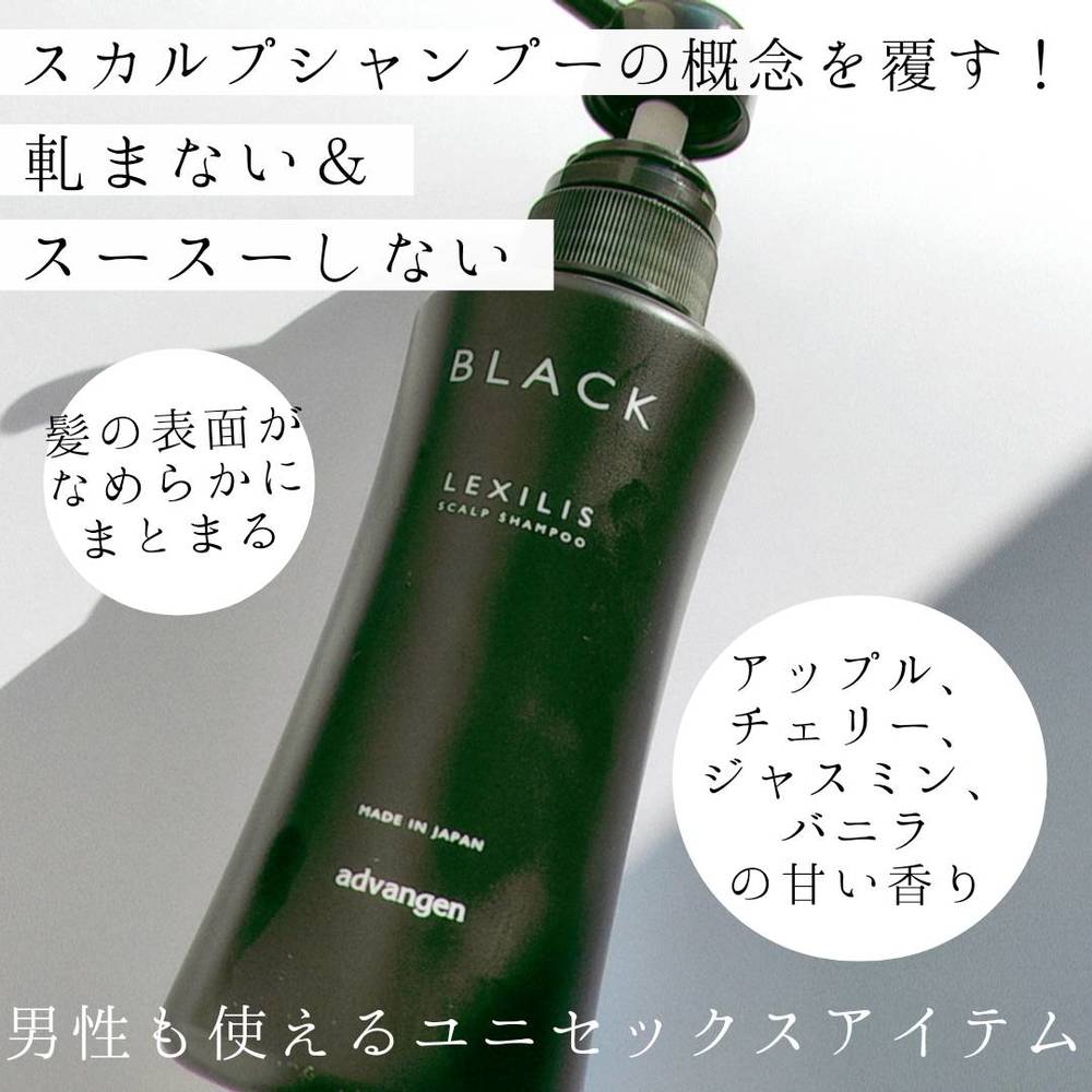 『BLACK LEXILIS (レキシリスブラック) スカルプシャンプー』 300ml/2,750円 (税込) ●スカルプシャンプーは地肌がスースーしたり、泡立ちが悪かったり……というイメージがあって、今まであまり使ってきませんでした😥 ●スカルプシャンプーの概念を覆す! 軋まない&スースーしない ●男性も使いやすいパッケージのユニセックスアイテム ●アップル、チェリー、ジャスミン、バニラなどの甘い香り ○ヒアルロン酸の2倍の保湿力を持つ「リピジュア」を配合! ○なめらかに髪...