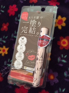 たったひと塗りでリップメイクが完成☆.。.:*・ モニターで現品をいただきました。細身でパリジェンヌ的な絵柄も可愛い。♥。下地がいらないなんて、まさか〜?と半信半疑で直塗り。驚く程する〜っと塗れて潤い感があります。色も綺麗に入る。手軽におフェロメイク完成!!マットな仕上がりに大満足。ただ夕方にはやはり乾いてくる感じがあるので要注意かな。