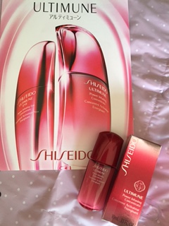 資生堂さまよりモニターでミニサイズを♥乳液のようにとろりとした乳白色。でもさらっと肌になじむ美容液。化粧水の後に使用。翌朝までツルンとした肌を持続。つけるだけで肌がワントーン明るくなったみたい。心地良い香りと赤いボトルが前向きな気持ちを応援してくれるアイテムです。