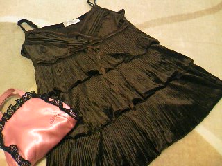 ベロア素材のデザインキャミソール 古着屋さんで発見しました。300円です。 状態もよく、デザインも好みだったので購入。 細かいプリーツが入っていて動きが出ます。 モトがいくらだったのか分かりませんが、 胸元のリボンは値段相応なきがします…。 着心地は古着独特の馴染み感があって着易く インにしてチラ見せしてもかわいいし、 存在感があるアイテムなのでとってもお得でした。