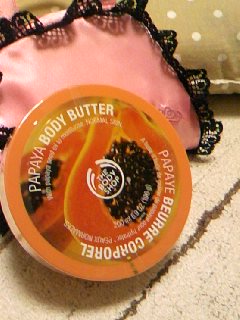 ボディショップから。PAPAYAのボディバターです。 ボディバターのシリーズの中でもサツマと同じくらいノビが良く、 香りも軽い方なので使いやすいと思います。 乾燥肌ですがこれをお風呂上りに全身に塗ると乾燥したり かゆくなったりすることはまず無いです。 ボディショップのバターはどれも香りが強めなので、 パジャマや布団に香り移りが多少あります。 甘い香りに包まれて眠れるのでリラックス効果もあると思いました。 バターは2個目の購入ですが、ローションと比べると 少し香りが強いのかなと思います。 ノビはローショ...
