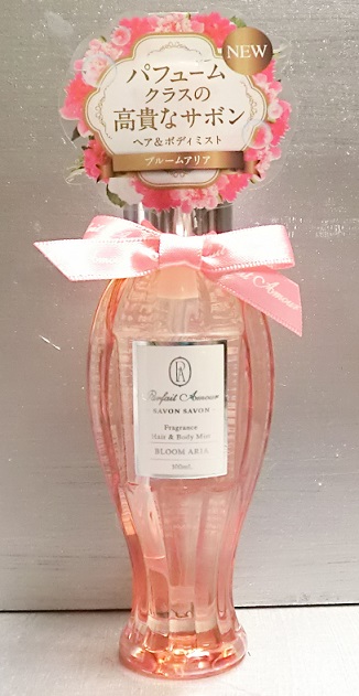 私が使ったのはブルーム アリアという、シトラス フローラルブーケ系の香りです。 ボトルがピンク色で、可愛いリボンが付いています。 シュッとつけた瞬間はあまり好きな香りではない感じで残念と思いましたが、時間がたつとフローラル系のいい香りがして優しい香水って感じ! 強すぎず弱すぎない丁度いい香りが良かったです。 従来の3倍の保水力を持つ進化型ヒアルロン酸と5種のセラミドブレンドで 保湿してくれるというのも嬉しい。 体だけでなく髪にも使えるので嬉しい!