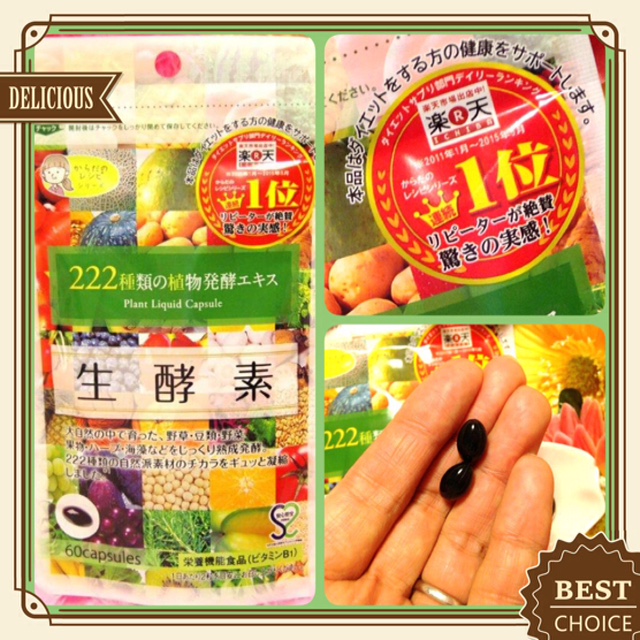 222種類もの植物エキスがバランスよく配合されている、ダイエットも健康もサポートしてくれるサプリメントになっています。 手間暇かけた非加熱製法で熟成発酵されていて、他にも美容をサポートしてくれる、コエンザイムQ10、Lカル二チン、乳酸菌も配合になっっています。 ビタミンB1もしっかり配合され、栄養機能食品になっているのもいいですね。 1日の目安は2粒になっています。 粒は小さめでソフトカプセルなので飲みやすいですね。 1粒当たり34円というお手頃か価格ナノもいいですね ^^ こちらを飲...