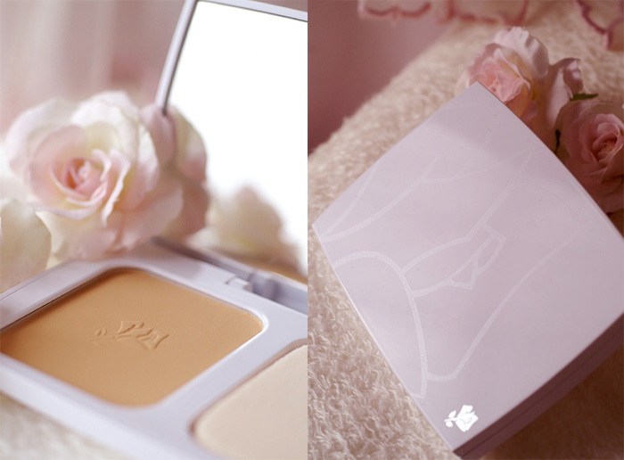 まずはケースから。 真っ白なだけではなくてですね、傾けてみますとランコムのローズモチーフが見えます。 清楚・可憐なデザインのケースですっかりお気に入りです! 薄型ですし持ち運びにもいい厚み。 この角っこのローズマークが素敵(*ノωノ) ミラーも大きめなので見やすいですね。 両面パフもなかなか便利で面白いです。これはパフだけ別売りでもっと欲しいですー♪ 使い心地としては、密着力・カバー力、共にかなり優秀。 気になってる小さなシミがあるんですけども、ひと塗りでもだいぶしっかりカバー。 なのに厚ぼった...