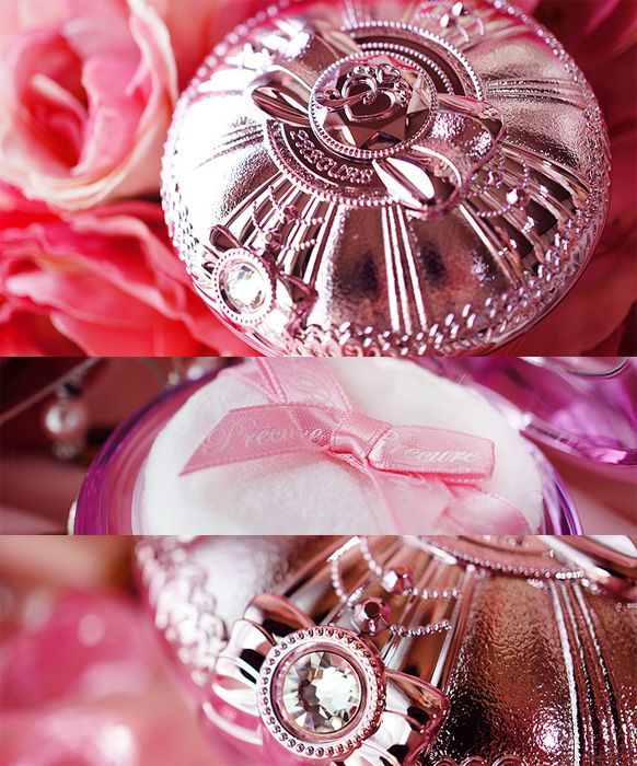 これは綺麗! 子供向けアニメで有名なスマイルプリキュアの劇中に登場する スマイルパクトの大人版といった感じです。 シャイニーピンクのケースが美しいですね! プラスチックでありながらしっかりした作りと上品で高級感のある感じで素敵です。 娘が持ってるオモチャのスマイルパクトと同じく、 正面のパチンと留めるところにはキラキラな装飾が施されております。 パカっと開けると、可愛らしいパフが登場。 ちゃんとプリキュアの文字がプリントされたリボンが。 固形パウダーではなくてお粉なので、 使い切っちゃった...