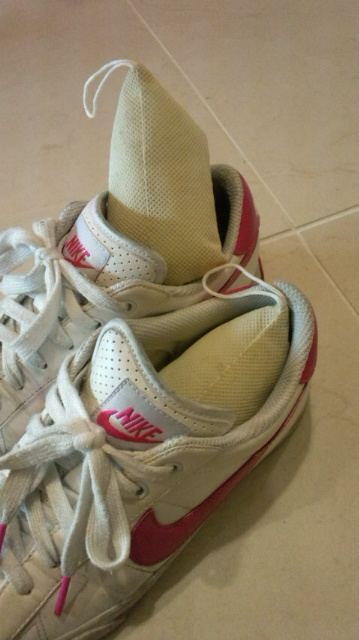 雨の中外出すると、靴が濡れてしまう事がよくあります。特に梅雨などの雨が続く時期は一度濡れるとなかなか乾かなくて困る… そんな時に帰宅してから必ず使用するのがこの靴用の湿気取りです☆ 靴の中に入れておくだけでじとじと感がなくなります♪除湿だけでなく、消臭効果もある優れもの♪ 100円ショップで購入☆ しかも天日干しすれば繰り返し使えます。 女性だけでなく、男性の靴のニオイにも効果アリです!