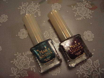 82:ビリジアン(写真左側) 昨年 私の大好きな色が見つかりましたぁ〜。(^^v)♪ 青みがかった緑で、ラメが入っています。 3度塗りすると、とても綺麗な色に仕上がります。 最近、ネットで話題になっているネイルのシリーズです。