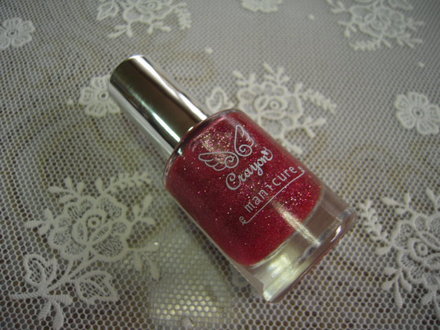 以前、100均の「キャンドゥ」で買いました。 CMK1205です。 100均はテスターがないので、派手だと思いアート用のイメージで買い ました。 それが、塗ってみると透明感があって、おとなし目の赤でした。 これなら、自爪にも使えます。 綺麗な色でした。 塗りやすいし、天使の羽根の絵のボトルも可愛いです♪