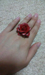 バラ大好き♪ バラの香りも大好き♪♪この指輪、今にもバラの香りがしてきそうじゃないですか?笑 oioiで購入しました。 1000円くらいだったかな?一目惚れで買っちゃいました(^ー^)ノ だいたいいつも衝動買いしちゃったものは買わなきゃよかった〜って、後悔することが多いけど、これは今ではお気に入りで、よく使ってます☆