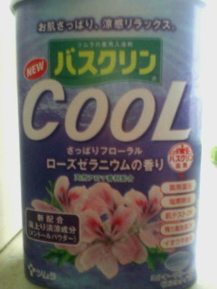 夏の入浴剤はやっぱりこれです!! バスクリンcool!! 夏って、お風呂には入りたいけど、暑苦しい〜ってときよくありませんかぁ?そんなときにバスクリンcoolなら、すっきり爽快♪暖かいのにひんやりな感じがいいんですよね〜♪ 汗もすっとひきます♪ お湯の色も青(?)みたいな感じで涼しげだし〜(^-^)