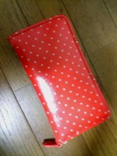 去年の秋の限定です。 赤の水玉かわいい!! 長財布の重そう感がないです。 外側はビニール加工してあるから汚れにくくてうれしいんですが、中が布なので、小銭入れのところが汚れちゃう〜(;_;) かわいいのにカードもたくさんはいるし機能性抜群で、すごく使いやすいので超お気に入りです♪
