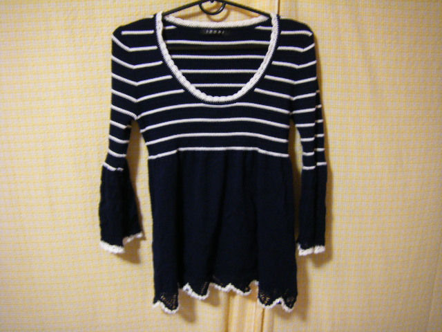 <バーゲンの戦利品> お手頃価格がうれしい、イングの戦利品です。これも、1,000円引きになっていたので、色違いをもっているにもかかわらず、「いろち買い」してしまいました・・・。 ネイビーは、マリンっぽくて、かわいいですよね!! シンプルなので、来年も着れちゃうかも!!裾が広がるデザインですから、パンツにあわせるのがいいかも。