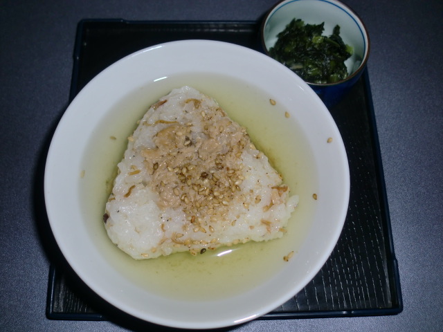 雑穀米で作ったおむすびを 今流行のおむすび茶漬けにして食べてみました。 さらさらと食べやすいので忙しいときとか、時間がないときに お勧めのレシピです。 簡単で思ったよりもおいしくいただけました。 おむすびとお茶漬けって意外と合います^^