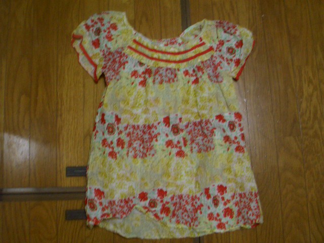 またまたマルカワで¥1000!!お色もピンク系からブルー系オレンジ系と揃っていたけれど、夏らしいオレンジベースで!!うっすい生地でスケスケなので中から1色取ったキャミを合わせて着ています!!洗うとシワシワになるけれど、ハンガーにつるしてしまっておけば次着るときには気にならないならないシワレベル。涼しい素材なので今年の夏は大活躍です!