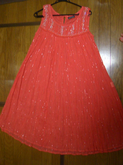 ご近所マルカワでセールで¥1000!!かなり興奮して買いました!エスニック調の刺繍も色も夏らしいオレンジ!!かわいい!!しかもかなりのAラインコレなら旅先で食べ過ぎても平気でしょ?生地もシワシワしてる感じなので気を使わずにすむし。ただ、若干透けるので水着の上や、レギンズもしくはショーパンと合わせないとなーって感じ。レザーのサンダルに合わせてがんがん着る予定!!