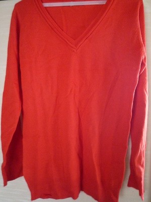 グレーのニットの色違いで、セールに出ていたレッドのVネックニットを購入しました。 手持ちのグレーのニットがとってもお気に入りなので、 1000円以下のセール品になっていたのを見て、迷わずポチ。 これぞ戦利品です! 細身のラインですが、圧迫感はなく着心地もいいので、 ホント大好きです。 差し色に使えそうなニットをゲットできて良かったです。