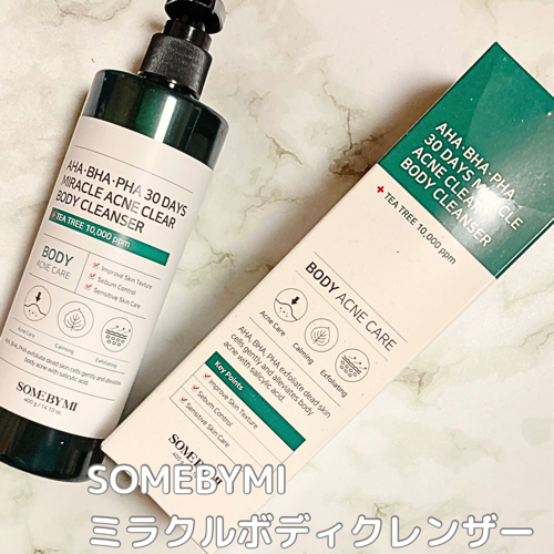 レチノールなどで人気のSOMEBYMIの毎日使えるボディークレンザーを使ってみたよ♡ ☑︎SOMEBYMI ミラクルボディクレンザー ☑︎400g 3,420(Qoo10公式) ☑︎ ドクダミエキス(肌を清潔にする)、ユーカリ(油分、毛穴ケア)、BHA(サリチル酸)(過剰分泌された皮脂、角質、汚れをキレイにケア)、АНА, РНА (角質ケア)配合 *上記の内容は原料の特性である ☑︎ SOME BY MIのティーツリー、ヨモギ、ツボクサ、ツボクサ滴定エキスが調合されている鎮静ケア独自成分Tru...