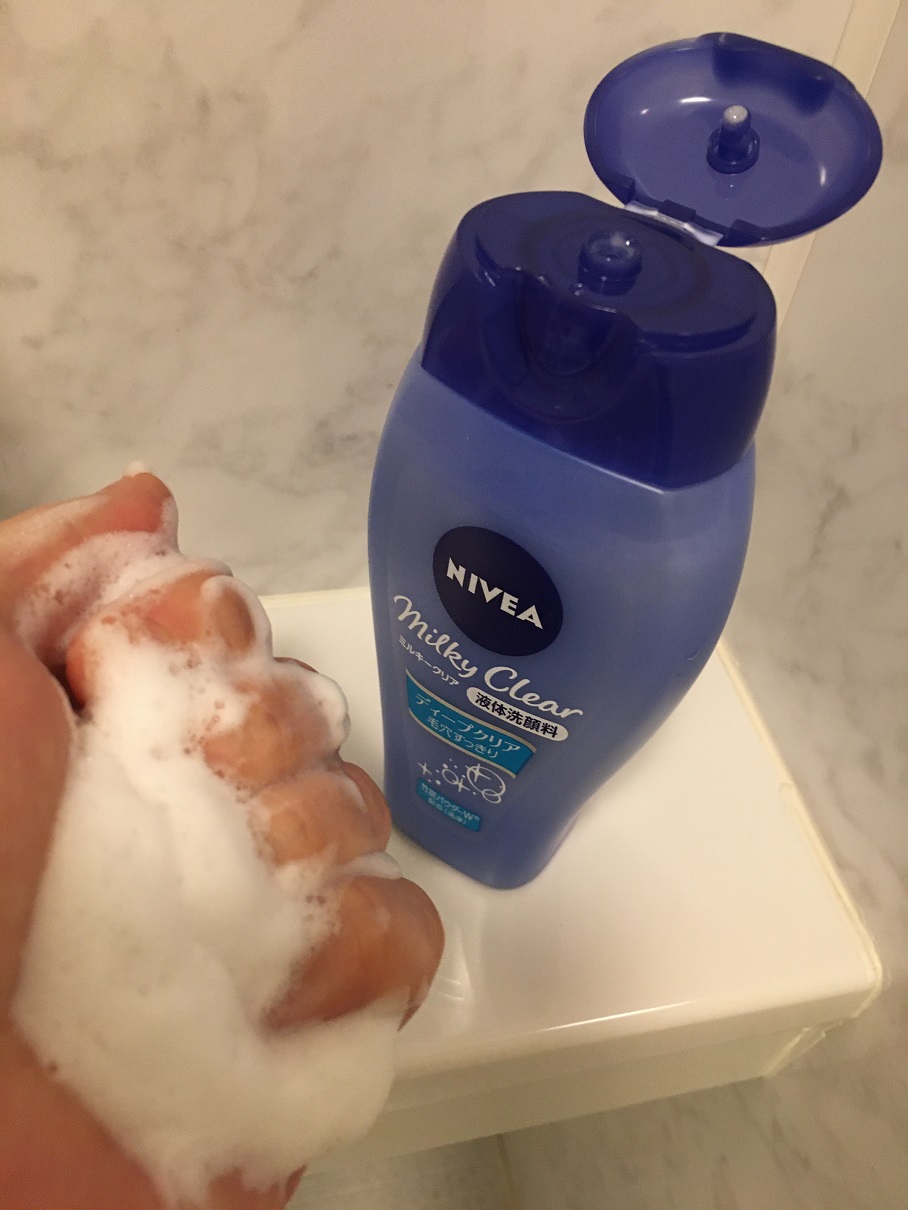 アクアブルーのボトルで綺麗で、涼し気です。 側面がシェイプされていて、持ちやすかったです。 白いとろみのあるミルキー状の洗顔料です。 もっちりしたきめ細かい泡ができます。 泡立ちがとてもいいです。 ホイップクリームのような濃密泡です。 上質なモコモコな泡で、顔全体を包みこむようにして洗顔できました。 弾力泡で優しく、転がすようにして優しく洗えます。 お肌をゴシゴシせず、洗顔できました。 汗をかいた後に使っても、お肌のべたつきがなくなりました。 小鼻の黒ずみ汚れも、すっきり落ちました。 洗いあがり...