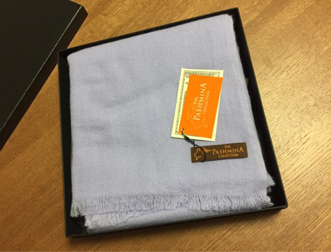 高級感溢れる素敵な箱に入っています。 「The Pashmina Collection」の箔押加工が施されていて、素敵です。 しっかりとした硬さのある箱なので、ギフトにぴったりです。 取扱い説明書が入っていて、オレンジ色のサテンリボンをかけてある箱にうっとり。 カシミヤ100%の高級パシュミナストールです。 幅70センチ×長さ200センチと大判ストールで、存在感があります。 巻き方のアレンジがたくさん楽しめます。 無地の大判ストールで、カラーバリエも豊富です。 The Pashmina Collectionでは、「細いカシミヤ繊維を紡...