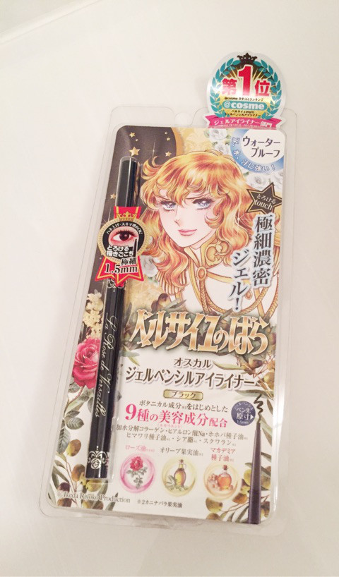 ベルサイユのばらのオスカルのパッケージで、インパクトがあります。 ドラッグストアの売り場でも目立ちますね。 細身のアイライナーで持ちやすいです。 黒にシルバーの薔薇のお花がデザインされていて、とっても素敵です。 ペンシルアイライナーですが、ジェルのような描き心地です。 ペンがとろける柔らかさがあって、とっても描きやすいです。 目のキワまでしっかり描けます。 スルスル〜と書けて、ひっかかりがないのが、うれしいです。 極細ラインで描きやすくて、テクニックいらずです。 まつ毛の間も埋...