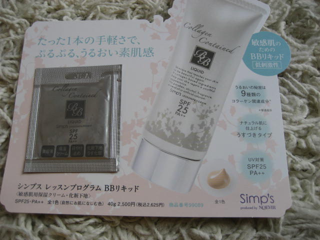 お気に入りコスメのひとつです。 化粧水の後これ一つで美容液、保湿クリーム、日焼けとめ、化粧下地の効果があるという、かなり使えるBBリキッドです。 サンプルを使った感じでは、気になる口周りのかさついた感じがなくしっとりした仕上がりでいい感じ。 こういった一つで何役もできるものに惹かれますね。