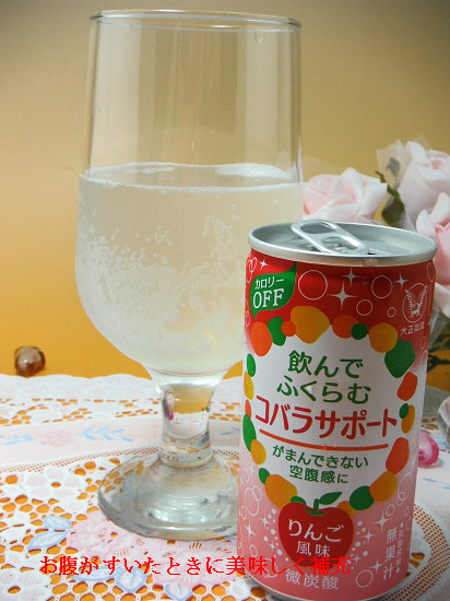 モニターでリンゴ味を飲みました。 私はもともとゆず味の時から愛用していたので、これまとめ買いしたいなぁと思っていたときに飲むことができました。 これよくできていて、お茶を飲んだ後とか凄い空腹のときは満腹にならなく、本当でご飯食べたいなぁと思ったときに飲むと1時間以上電車に乗っていてもお腹がすくことがなく、のどが渇くことしかめったに感じないというほどの飲み物なのです。 それは食物繊維ペクチンと、空腹の胃液の強酸性が反応して膨らむのをコバラセンサー技術と大正製薬独自の特許取得の飲み物だからなので...