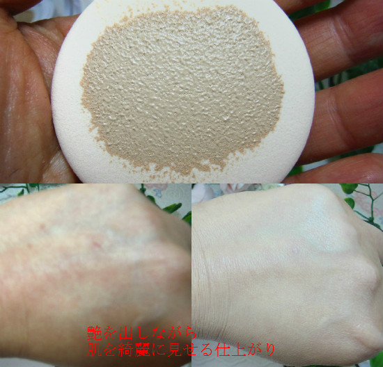 モニターで使用しました この商品は、リペアジェルの成分が入っている商品で、リキッドファンデーションに合わせることにより、美容成分も発揮する優れものです。 1.美容液成分がそのまま入っていて、天然成分100%でこの値段は良心的。 2.肌色がどんな肌にも使えるのに、載せるパフも毛先が長いのできちんと含ませながらふわっとしたしあげにできるのがいい。 3.粉も飛ばないでこぼれないので化粧しやすいし、リキッドの保湿感を吸い込まないのがいい 4.個人的もう少ししっとりしたら7点にしたいです。