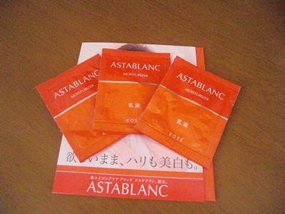 私の初秋の乾燥対策を紹介します! サンプルでいただいたコーセー、アスタブランのモイスチュアライザー です。こちらはさっぱりとしていたローションと違って こっくりタイプの乳液でした。 化粧水同様、アスタキサンチンCPX配合で、美白ケアをしてくれま す。肌を柔らかくしてくれるオイルも配合されているので、 肌がごわごわしたりしているときにお勧めです^^ 香りもよく、とろみがすごいので、たっぷりとつけて マッサージをしながらなじませるのもいいと思います。