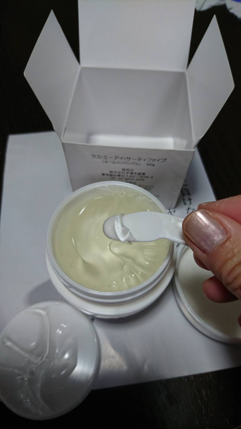 シンプルなパッケージのオールインワンゲル。 スパチュラつきなので、衛生的に使えます。 化粧水〜クリームまでの4役を1回で補えるので、忙しい人にはありがたいですね。 香りはほとんどありません。 黄色味がかった透明のぷるっぷるしたゲルです。 取る量が多めだと、ちょっと入り込むのに時間がかかるかもしれません。 少量を何度か分けて重ね付けするとしっとりしていい感じです。 だけど、この寒さなんで夜だとこれだけではちょっと保湿が足らない気がしますね(;´Д`) 春〜夏にかけてだとコレだけでも大丈...