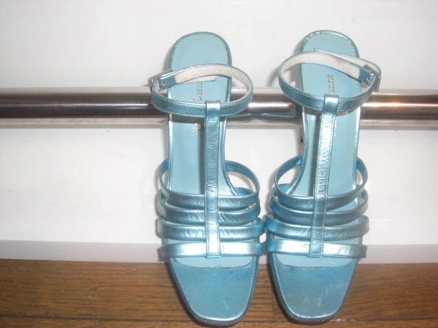 ピンキー&ダイアンで購入したメタリックサンダル。 淡いブルーのメタリックで存在感抜群! 凄く履きやすい!でも1度も履いてない。 ストラップも凝ってて凄い高級感です。 革が柔らかくて上質^^ ヒールも9cmほどあります。 デニムと合わせようと思ってました。夜にもバッチリ! 今度ぜひ、履いてみようと思ってます^^ プライス23000円でした。 使わなきゃ!!