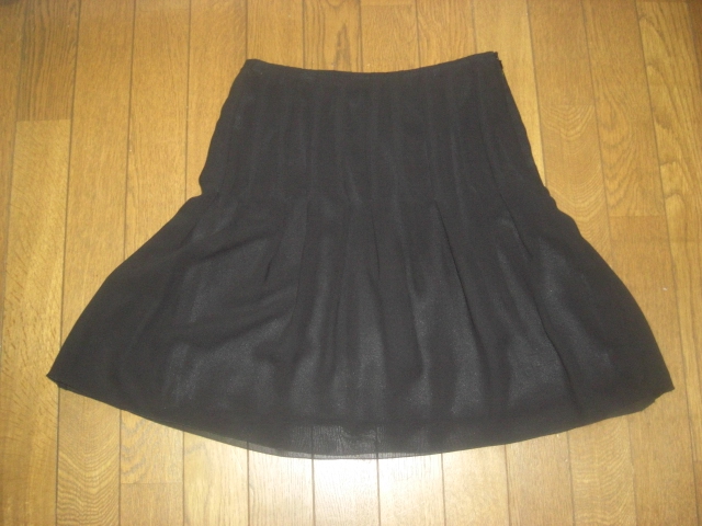 インエのふわふわのタックフレアスカートです^^ シフォンのようにふわふわで風が吹くのが楽しみ。 これもバーゲン前に購入です。 タックも綺麗に入っててラインいいです。 黒は本当に重宝します^^