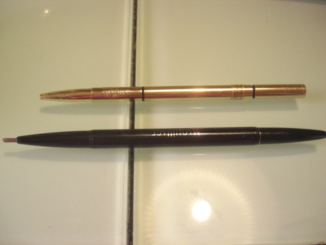 マキアージュのアイブロウとエレガンスのアイブロウです。 マキアージュはアイライナーのホルダーにブロウもセットしてます。 どちらもブラウンをセレクト。眉毛を少し茶色にしてるのでブラウンです。書きやすくて色もいいです。 ただ持ちが少し悪いのが難点。。。 落ちなかったらいいのに!とかなり残念。 Kパレットのブロウを試そうと思ってます。