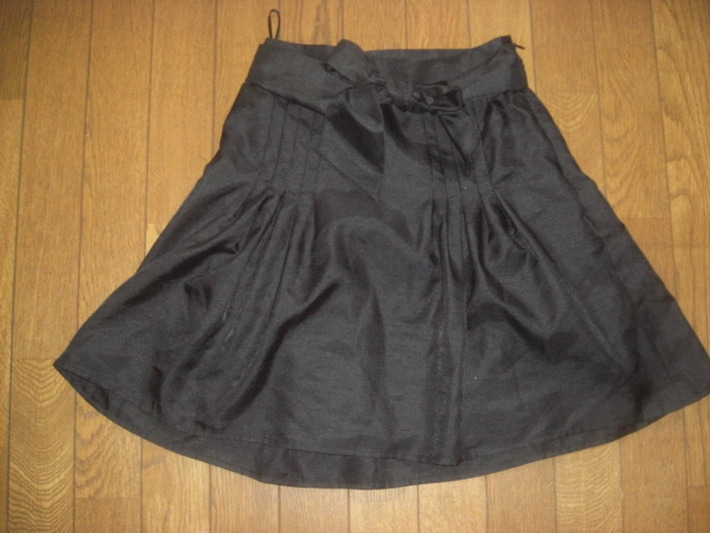 イプダのタックフレアスカートです。サイズ36.ウエストにはリボン^^ フレア控え目ですが光沢のある素材なので夜にも着ていけます。残念ながらバーゲン前にゲットしました。 黒なので合わせやすくてGOOD! ふわふわ揺れて可愛いです^^ お値段もお手頃な13000円程度。安くて可愛いのでたまに購入します。秋にも着れそうなので楽しみです^^