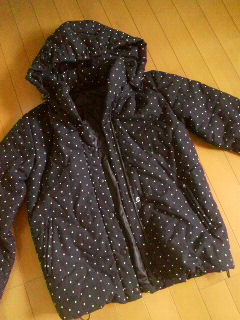 この冬お気に入りファッションアイテムは、 フード付き中綿ブルゾンです。 ドットはぜんぶ刺繍です。 ポケットはファスナーあり、フードと袖にドロスト付きで調節出来ます。 フードは取り外し出来るので2WAY。 お値段がお手頃なのに手抜きがない感じで気に入りました。 防寒対策に♪