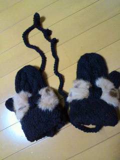 この冬お気に入りファッションアイテムは、ミトンです。 ケーブル編みのミトン* 手首の辺りはボアで、 ヒョウ柄?ファーのふわふわのリボンが取り外し出来るのでシンプル仕様にも。 子供用のみたいに首にかけるヒモ付きが可愛い! 防寒対策に♪