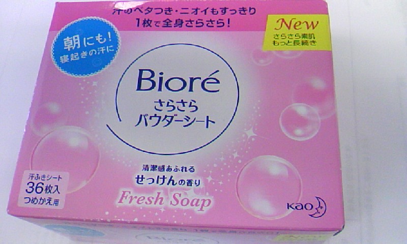 おススメのボディケアアイテムは、 ギャッツビーのフェイシャルペーパーです。 まさにこれは、男性ものであります。 男性の皆さんが、顔やら、おしぼりのようにゴシゴシする アイテムです。 女性は、お化粧がとれてしまうので、顔をゴシゴシ拭けませんね。 汗をかいた時、これで、身体を拭きます。 すーーっとした爽快感があるので、 汗が一気にひいてくれます。 毎日洗ってるはずの身体ですが、これで拭くと、 恥ずかしながら、真っ黒になることもしばしば、、、 ニキビ用や、スーパークールタイプもあるので、 汗をそのま...