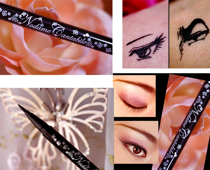 やるな、バンダイ! ベルばらとか不二子ちゃんコスメでも知られていますね(*´д`*) アイライナー初心者さんでもわかりやすいように、 パッケージ内側にはのだめさんの漫画とともにイラストで使い方を説明してくれてます☆ 極細フェルトペンタイプで描きやすく、 なかなか素早く乾いてくれるので便利ですね! ウォータープルーフでありながらも、お湯で簡単にメイクオフできる嬉しい仕様でした。 自分の目元でもさっそくお試しさせていただきました。 アイシャドウの上からでもサっと塗れて、乾きも早くてこれは使い勝手い...
