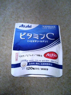 ◎紫外線対策◎ アサヒフード&ヘルスケアのアクティオ ビタミンCです。 今年に入って紫外線を気にするようになって、 ビタミンCのサプリメントを飲むようになりました。 30日分で120粒入り198円でした。 お得ですが、売っているのをあまり見かけません; ビオチンとルチンが入っています。 これを飲むようになって肌が綺麗になってきたような… 気がするようなしないでもないような… 特に嫌いなところもないので、 DHCとコレどっちがいいか考えてリピします!