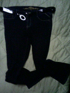 ◆バーゲンの戦利品◆ 濃紺のスキニーパンツです。 足が細く見えてフィット感のあるパンツがほしいなと 思っていたので買いました。 スキニーパンツがとても気になっていたので、 気に入ったものが見つかって良かったです。 このスキニーパンツは地元で見つけました。 バーゲンで50%OFFになっていたので、お安く買えました。 履き心地もいいし、足もスッキリ細く見えます。 お気に入りのパンツなので、 いろんなTシャツやチュニックと合わせまくりです。