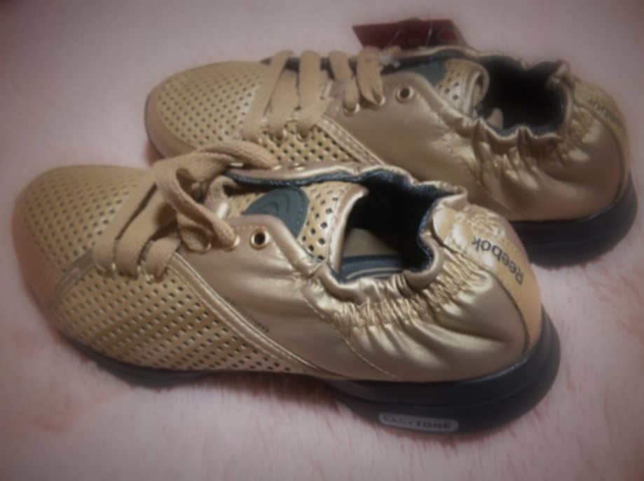 春のファッションアイテム EASYTONEのHAPPY!10,000人モニターキャンペーンにて 頂いたシューズ。 靴裏がちょっと変わってて、 デコっとなっててバランスを取りながら歩くような仕様に。 なので、効果的に運動ができるようになっています。 色はシャンパン。 ゴールドって感じですね。 中はチェックになっててちょっとオシャレ。 ただ、かかと部分の絞りが、痛い。 今日もちょっと履いてみたけど、痛い。 靴がちゃんと馴染むことを祈る。