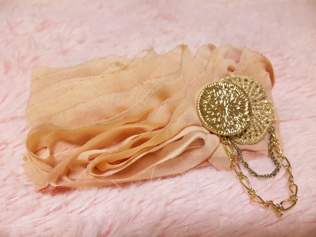 春のファッションアイテム 一目ぼれのバレッタ。 シフォン生地が重なってて、軽やか。 ゴールドの飾りが、甘くなり過ぎないスパイスに。 色はくすんだベビーピンク。 このくすみ具合が絶妙でいい。 春カラーって感じ。 今季はヘアアレンジにもこだわりたい!