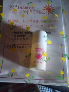 シャコレの日焼け止めのサンプルです。 3回分くらいありました。 クリームのいろは白色なんですが、伸びが良くてすぐに 肌になじむので商品の色はそんなに気になりませんでした。 つけはじめは少しべったっとした感じですが、 すぐにそれも感じなくなります。 量が少なかったので数日しか使えませんでしたが たくさんあったらこの夏に大活躍するアイテムだったと思います。